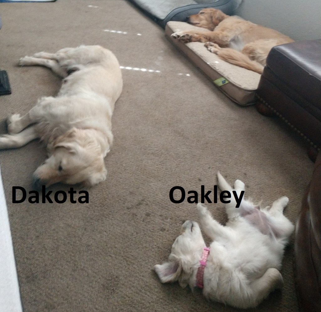 Typically our girls and Golden Retrievers in general go into heat every 6 months. Our girls typically go into heat in February and August, but as sometimes happen, two breeding females can sync their heat, and because Oakley will be late due to her last heat being a litter, Dakota is also late as well. I have heard from many breeders who breed Goldens, that just like when they deliver, they are on their own time schedule and will start when they want to. We have taken Dakota to a vet and he has given her some medication that will help her start her heat normally, any time now….